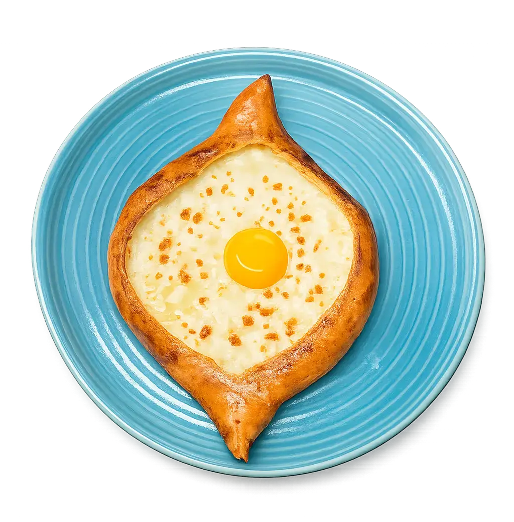 Traditional Georgian boat-shaped bread, blend of melted cheeses, fresh egg yolk